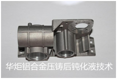 华炬新产品研究所技术咨询委员会科研人员现推荐一项铝合金压铸后钝化液技术配方,该技术产品适用于铝合金压铸后的钝化液,在压铸成型后,在铝合金外露的表面自动形成一厚度均匀且连续分布的稳定的氧化层,现将该铝合金压铸后钝化液技术配方及实例介绍如下供研究交流参考:(611311 325445)