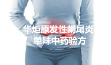 华炬新产品研究所技术咨询委员会科研人员现推荐一项原发性阑尾炎单味中药验方及方法,该技术验方根据中医辨证理论为研究,验方选用一味中药经加工炮制而成,简单实用,易于取材,造价低,疗效高,无毒副作用,有效地治疗原发性阑尾炎,现将该原发性阑尾炎单味中药验方及方法及实施例介绍如下供研究交流参考:(411471 331252)