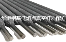 华炬新产品研究所技术咨询委员会科研人员现推荐一项铝基低熔点真空钎料配方,该技术适于3A21、5A05、5A06、6063及6061等多种铝合金中温或分级真空钎焊;箔状钎料厚度达0.05mm,宽度50mm,适用于多种规格铝合金构件真空钎焊;熔化温度低:500℃~520℃,对铝合金可在530℃~550℃时完成真空钎焊;钎焊工艺性好,润湿角小于15℃;焊缝耐蚀性好,焊缝经96小时中性盐雾腐蚀,强度基本不降低;制备设备、工艺简单,操作方便,利于批量生产,现将该铝基低熔点真空钎料配方及实施例介绍如下供研究交流参考:(611311 445489)