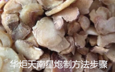 华炬科技新产品研究所技术咨询委员会科研人员现推荐一项天南星炮制方法步骤,该技术的有益效果是:一、天南星通过白矾、生姜炮制后能解毒增效,其解毒机理为吸附毒物,改变毒物的理化性质、生理活性及增强机体解毒能力,长时间的水处理能显著地降低天南星水溶出物及醇溶出物中醋酸铅沉淀物的量;二、制天南星的方法大多沿用清水浸泡,加生姜、白矾煮透心,切片干燥的工艺,长时间的水浸泡及煮沸,固然可以去除毒性,但因此也造成有效成分的流失,为此,采用新工艺炮制南星片,即只用清水浸泡,起白沫时,加白矾处理,至口尝微有麻舌感时取出,晾干,切片,不仅可以有效去除毒性,也减少了有效成分流失;三、炮制前的天南星含有大量有毒物质,其中的草酸钙为主要刺激性有毒成分,白矾不仅是降低或消除天南星毒副作用的关键辅料,还可以去除天南星的麻苦味道,生姜可以作为解毒材料与白矾协同作用;四、该技术炮制的天南星降低其毒性,缓和其燥烈之性,发挥了生姜、白矾的协同作用,增效减毒的目的,现将该天南星炮制方法步骤及实施例介绍如下供研究交流参考:(441271 643459)