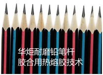 华炬新产品研究所技术咨询委员会科研人员现推荐一项耐磨铅笔杆胶合用热熔胶技术配方及方法,该技术产品配方科学、简单简洁、由于含有碳纤维、云母粉等耐磨成分,使得其具有高粘合强度、耐溶剂以及耐磨的优点,特别适用于铅笔杆的粘合,增加铅笔的生产性的成品率,不易脱落,现将该耐磨铅笔杆胶合用热熔胶技术配方及方法实例介绍如下供研究交流参考:(571511 325465)