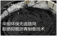 华炬新产品研究所技术咨询委员会科研人员现推荐一项环保无卤路用阻燃抑烟沥青制备方法,该技术产品阻燃抑烟沥青氧指数较高,能够产生自熄现象,且燃烧时不会产生卤化氢等有害气体,生产成本较低,制备工艺简单,生产环保无污染,应用面广;该技术产品阻燃抑烟沥青的阻燃抑烟机理是在沥青燃烧高温条件下, 电气石通过加快燃烧面炭化阻断了未燃烧的沥青参与燃烧的发生面,同时充分发挥其热电性能,受热释放出的电子在静电作用下会充分吸附燃烧产 生的沥青烟;该技术产品阻燃抑烟沥青中添加的金属氢氧化物可以起到促进和协 同阻燃作用,提高阻燃效率的功效。现将该环保无卤路用阻燃抑烟沥青制备方法实例介绍如下供研究交流参考:(611241 521343)