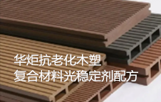 华炬新产品研究所技术咨询委员会科研人员现推荐一项抗老化木塑复合材料光稳定剂配方,该技术有益效果:该技术产品加添的光稳定剂,其分子链中有自由基捕捉基团受阻胺成分以及紫外光吸收功能的苯并三唑基团,同时还含有亲水分子长链与亲油分子链,该光稳定剂具有双重防御光老化功能,另外亲水与亲油分子链并存还可以在木塑复合材料中起到偶联的作用,使剑麻纤维与PVC基体结合得更好,进一步提高了防御紫外光老化性能,该光稳定剂含有聚乙二醇分子链,有一定的润滑作用,提高了木塑复合材料的加工性能。而日常生活中的紫外光是引起材料老化褪色的主要原因,该技术在复合材料中加入合适的复合型高分子光稳定剂,通过吸收紫外光和捕捉光降解引发的自由基来达到光稳定化作用,另外该光稳定剂具有特殊的分子结构不仅具有光稳定效果,而且起到偶联剂的作用,使剑麻纤维与塑料基体及其他原料成分结合得更好,获得较好的物理力学性能和加工性的木塑复合材料,从而拓宽了木塑复合材料的应用领域,现将该抗老化木塑复合材料光稳定剂配方及实施例介绍如下供研究交流参考:(641421 631413)