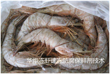 华炬新产品研究所技术咨询委员会科研人员现推荐一项冻虾速冻防腐保鲜剂技术配方,该技术即冻虾在冷却速冻过程中对冻虾进行的防腐保鲜技术处理,该技术产品的应用可以有效抑制虾在冷藏过程中黑变的发生,并且有效延缓细菌总数和挥发性盐基氮的增加,使冻虾贮藏期延长,保鲜效果更好,冻虾不变色、不变质,能安全可靠的对虾类产品的长期保存,提供放心新鲜的虾类食材,现将该冻虾速冻防腐保鲜剂技术配方及实施例介绍如下供研究交流参考:(341311 555451)