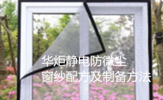 华炬新产品研究所技术咨询委员会科研人员现推荐一项静电防微尘窗纱配方及制备方法,该技术的有益效果是:该技术采用空气流通产生高压静电,比传统的微孔窗纱除微尘效果显著,同时可以保证良好的透气性和透光率。此外,在设计理念上与传统的静电防微尘窗纱有质的区别。传统的静电窗纱通过纤维带负电荷静电吸附微尘,不仅效率低下,且容易造成窗纱灰尘聚集,需要频繁定期清理。该技术创新采用静电排斥机理,阻隔微尘流通,除尘效果更加明显,且工业加工对设备无特别要求,并可广泛推广使用,现将该静电防微尘窗纱配方及制备方法及实施例介绍如下供研究交流参考:(571371 331452)