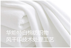 华炬新产品研究所技术咨询委员会科研人员现推荐一项特白棉纺织物风干印技术处理工艺方法,该技术产品的使用可将酸性好的增白剂作用于特白棉纺织物,并添加柔软剂等,能令白色特白棉纺织物在风干时不易产生风干印,达到良好的视觉效果,现将该特白棉纺织物风干印技术处理工艺方法介绍如下供研究交流参考:(711241 641446)