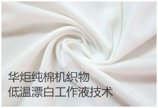 在对纯棉机织物进行后整理时,需要先对织物进行漂白处理,然后才能进行染色或印花,由于现有技术在漂白过程中,通常采用双氧水漂白为高温漂白和冷轧堆漂白,直接导致生产的能耗高,污水处理负担重,不能满足企业低能耗生产的管理的需求。华炬新产品研究所技术咨询委员会科研人员现推荐一项纯棉机织物低温漂白工作液技术配方,该技术产品的使用采用由席夫碱金属配合物、过氧化物、低温受控催化剂和水组成的低温漂白工作液,只需在50~70℃条件下处理,较原来的高温漂白配方的处理工艺能有效降低能耗约20%,现将该纯棉机织物的低温漂白工作液技术配方及实例介绍如下供研究交流参考:(711241 641465)