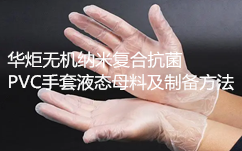华炬新产品研究所技术咨询委员会科研人员现推荐一项无机纳米复合抗菌PVC手套液态母料及制备方法,该技术与现有技术相比该技术的创新点在于:该技术抗菌PVC乳胶手套所添加的纳米复合抗菌液态母料的抗菌成分为无机抗菌剂,不含银离子,不会在人体沉积,安全无毒害,且抗菌效果好;所述的复合抗菌剂经处理后变为纳米级,在具有较大比表面积的同时不团聚,易分散,从而能够发挥高效的抗菌效果;所制备的纳米复合抗菌母料为液态,可直接加入到制备PVC乳胶手套的原液中,工艺简便,可与制备乳胶手套的原液充分混合均匀,现将该无机纳米复合抗菌PVC手套液态母料及制备方法及实施例介绍如下供研究交流参考:(571511 135455)