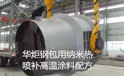为了保证钢包使用效果,钢包喷补修补是常有之事。常规喷补料只能用于冷态喷补,需要将钢包暂停使用,自然冷却(通常需要2-3天)之后才能进行修补作业。而钢包再次投入生产时,需要预先烘烤至1100℃以上,从而导致整个过程周期很长,既延误了生产,又耗费能源。因此,若能提供一种钢包用纳米高温涂料在热态状态下施工,势在必行。