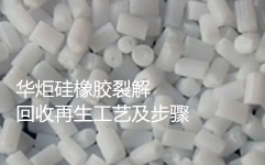 华炬新产品研究所技术咨询委员会科研人员现推荐一项硅橡胶裂解回收再生工艺及步骤,该技术通过使用带四个加热区且螺杆组合方式为反向凸轮组合的双螺杆挤出机进行粉碎,并在粉碎过程中增加过氧化异丙苯,这种改性剂可以使硅橡胶硫化而使得硅橡胶的硬度升高,这样就可以得到粒径较细的硅橡胶颗粒,将这种较细的硅胶颗粒作为裂解前的原料可以间接提高硅橡胶的回收效率,降低污染环境;先将粒径小于等于1mm的硅橡胶颗粒通过十二烷基苯磺酸以及浓硫酸溶液作为催化剂进行酸催化裂解得到粗DMC,然后将粗的DMC又重新放入反应釜中,加入氢氧化钾作为催化剂进行重排;这样的设计又进一步提高了裂解速率和收率,棕榈壳活性炭具有很好的吸附性能因此可以提高脱色性能,该技术的硅橡胶裂解回收再生工艺具有回收效率较高,降低污染环境的优点,而且产生的低沸物可以作为副产品外售。是一种回收效率较高,降低污染环境的硅橡胶裂解回收再生工艺,现将该硅橡胶裂解回收再生工艺及步骤及实施例介绍如下供研究交流参考:(671221 311387)