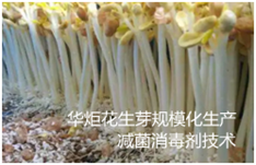 华炬新产品研究所农业技术事业部技术人员与有关院校联合研究开发了花生芽规模化生产减菌消毒剂技术,该技术产品能满足花生正常生长发育,无公害、灭菌效果好、配方简单、使用方便、操作性强、价格低廉、易于推广,具有良好的应用前景,现转让该花生芽规模化生产减菌消毒剂技术,提供技术配方、生产加工方法等,并提供相应技术服务,进行多种形式的合作,欢迎免费咨询、联系。