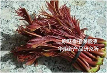 香椿属楝科,为多年生落叶乔木,是我国独有的一种树上佳蔬,其顶端嫩芽、嫩叶脆嫩多汁,芳香馥郁,风味独特,是不可多得的优良蔬菜。香椿嫩芽含有丰富的营养物质,每百克椿芽中含维生素C可高达48毫克以上,还含有相当丰富的胡萝卜素、磷、铁等元素、低糖脂肪,实为蔬菜中的上品,可炒食、凉拌、油炸、干制和腌渍等等。但由于香椿季节性的差异,香椿的采摘期短,鲜嫩易腐,在常温下放置2--3天无论是新鲜度、风味或质地都会大大降低,一周不到就几乎失去特有的食用价值。目前香椿加工方法主要包括腌制和脱水加工,腌制的香椿能够保藏较长时间,但是盐含量过高无法保持香椿的原味,很多消费者难于适应其口感;脱水加工的香椿也能够保藏较长时间,但是因脱水加工之后的香椿也失去了原味,与新鲜的香椿相比口感相去甚远。华炬新产品研究所针对香椿芽的这一特性研究开发出了原味香椿保藏液技术,使香椿芽长期保持原味,可以解决香椿的一季生产常年消费的问题,可以更长时间吃到香椿芽的美味,现向社会转让该原味香椿保藏液技术,亦可进行多种形式的合作。