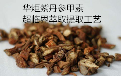 紫丹参甲素为橙红色柱状结晶,熔点173-175°,分子量为C19H180O4,分子量为310.12。紫丹参甲素具有对动物肿瘤具有活性,120 或150mg/kg 剂量,腹腔注射,对小鼠Lewis 肺癌,黑色素瘤B16 和肉瘤180 的抑制率为35.8-67.8%,可使白血病P388 小鼠的生存时间延长100% 以上;对金黄色葡萄球菌209P 的抑制作用比隐丹参酮强。目前紫丹参甲素提取方法多采用有机试剂提取及硅胶柱分离,此类方法提取效率低,纯化过程复杂,产品收率低,不适合工业化生产。