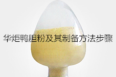 华炬新产品研究所技术咨询委员会科研人员现推荐一项一种鸭胆粉及其制备方法步骤,该技术的有益效果是:1、用鸭苦胆提取鹅去氧胆酸后的废料制成胆粉产品,可以促使鸭胆资源开发利用,减少浪费,减少环境的污染。2、该技术产品其特征是,用鸭苦胆提取鹅去氧胆酸后的废料制成的易溶于水与乙醇的淡黄色粉末,胆酸含量为35-40%,总胆汁酸含量70-80%该技术产品胆粉产品可以替代牛胆粉,入药人工牛黄。3、该技术有很高的社会价值和经济价值,按照其收率计算,可促使每吨鸭胆增加4000元的生产附加值,现将该一种鸭胆粉及其制备方法步骤及实施例介绍如下供研究交流参考:(5 311341 373305)