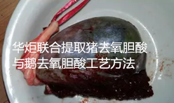 鹅去氧胆酸(chenodeoxycholic acid,简称CDCA)化学名为3α,7α-二羟基-5β-胆烷酸,分子式C24H40O4,分子量392.58。是1848年首次从鹅胆汁中提取得到的。鹅去氧胆酸具有溶解胆结石的能力和其他药学性能,自上世纪七十年代以来,在临床上被用作溶解胆结石的药物。近年的研究发现,在溶解胆结石方面,鹅去氧胆酸的同分异构体熊去氧胆酸的临床应用效果更好,且没有副作用。因此,在溶解胆结石药物的临床应用方面,熊去氧胆酸逐渐取代了鹅去氧胆酸。天然熊去氧胆酸来源于熊胆汁,以前通过杀熊取胆或通过胆汁导流术从熊体内抽提熊胆汁而得到。目前,这种做法已经被国家明令禁止。随着临床应用的需求量不断增加,天然熊去氧胆酸远远不能满足市场需求。通过化学合成方法获得熊去氧胆酸变得越来越重要。近年,以鹅去氧胆酸为原料,合成熊去氧胆酸工艺过程大大简化,成为合成熊去氧胆酸的主要途径。目前,鹅去氧胆酸的主要来源,一是从鸡、鸭与鹅等家禽胆汁中直接提取得到;二是从牛羊胆汁中提取胆酸,再以胆酸为原料通过化学合成得到鹅去氧胆酸。以家禽胆汁为原料直接提取鹅去氧胆酸,由于受技术限制,目前市场上的鹅去氧胆酸产品基本是从鸡胆汁中提取得到的。鹅的饲养数量较少,成分相比,鸭胆汁的成分较复杂。鹅去氧胆酸生产企业之间的竞争,促使生产鹅去氧胆酸的原料鸡苦胆价格飘升,以牛羊胆汁为起始原料进行化学合成鹅去氧胆酸,其工艺周期长、成本高。在各种动物胆汁中,猪胆汁是最常见且产量最大的,