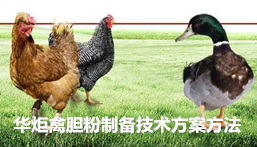 华炬新产品研究所技术咨询委员会科研人员现推荐一项一种禽胆粉制备技术方案方法,该技术制备方法加入了冷却凝析步骤,解决了脂类杂质难以充分去除的技术问题,由此制备方法获得的禽胆粉中的牛磺鹅去氧胆酸的含量较高。有益效果在于: (1)巧妙的利用动物油脂凝固点高的特点,用冷却凝析的方法使油脂冷凝出来,然后过滤,除去了绝大部分的油脂。这种大家忽略的相对原始的方法反而才是最合适的,所以采用低温析出加精密过滤的方法,低温使动物油脂可以自然凝析出来,通过过滤通量较大的精密过滤设备把油脂和低温沉降的杂质过滤掉,工艺简单可控。(2)避免了有机溶剂的使用所带来的安全性差、成本高和有机残留等问题。发明人尝试过一些低毒害作用的有机试剂,除脂效果并不好,并也存在操作难度大的问题。经多方尝试,发现采用冷凝的方法可以使禽胆汁油脂凝固并漂浮于液体表面,通过简单的过滤可以比较彻底的去除油脂凝块。过滤后,检测发现有效物质并没有明显减少,相对含量还有所增加。减少了禽胆粉精制所需时间,一次冷凝便可以去除大部分脂类杂质。在工业化大生产的有机溶剂萃取操作中,需要多次萃取才能实现对脂类杂质的去除,每次萃取时间至少在12小时以上,现将该一种禽胆粉制备技术方案方法及实施例介绍如下供研究交流参考:(311311 367477)