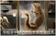 目前国内外保存样本,最为普遍的是利用甲醛溶液,但甲醛溶液有强烈的刺激性气味,在制作和使用的过程中,不仅污染环境,更重要的是危害人体健康,如医学院的尸体解剖教学,教学人员即使带上口罩,其眼睛和呼吸系统还是受到不同程度的危害,成了多年以来困扰医学院教学的一个难题,甲醛保存液易使标本机体发硬、退色、不保鲜,此外甲醛溶液易混浊,需经常更换,因此人们希望找到不含甲醛的动物标本保存液。华炬新产品研究所技术咨询委员会技术人员现推荐一项非甲醛动物标本保存液技术配方,该动物标本保存液使用效果好,无毒、无色,使用过程中不需更换,对工作环境没有不良影响。 现将非甲醛动物标本保存液技术配方介绍如下供研究交流参考:(311811 871364)