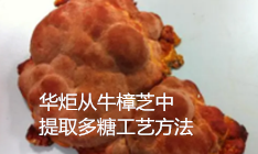 华炬新产品研究所技术咨询委员会科研人员现推荐一项一种从牛樟芝中提取多糖工艺方法,该技术具有有益效果是:采用该技术方法,牛樟芝多糖得到率达到3.93% 以上,并且提取过程安全,对多糖的分子无破坏,杂质含量少。由于多糖 易溶于热水,难溶于有机溶剂,采用乙醇预处理。能有效去除一些脂溶性 物质如三萜,还能有效软化和破坏细胞壁膜,有利于多糖的提取,同时可 以有效去除大部分色素,避免后处理引起多糖的损失。该技术采用苯酚一硫 酸法测定提取的粗多糖中的纯多糖含量的方法,显色稳定,灵敏度高,重 现性好,不受蛋白存在的干扰,既能客观表征牛樟芝子实体多糖的实际含 量,又保留了活性多糖,现将该一种从牛樟芝中提取多糖工艺方法及实施例介绍如下供研究交流参考:(211471 653529)