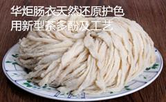 华炬科技新产品研究所技术咨询委员会科研人员现推荐一项一种肠衣天然还原护色用新型茶多酚及工艺,该技术的优点在于:该技术对天然护色液的配方进行了调整,配方中,茶多酚具有抗脂质氧化的作用,异抗坏血酸钠能够将氧化性肌红蛋白还原为还原型肌红蛋白,也能将NaNO2还原为HNO2继而产生NO,NO与还原型肌红蛋白发生反应加速,从而起到增加肠衣色泽的作用;柠檬酸对金属离子的螯合能力很强,可以作为抗氧化剂的增效剂;而D-半胱氨酸可以促进氧化作用的金属离子发生螯合, 同时释放出氢,破坏自氧化过程中产生的过氧化物,使之不能继续形成醛、酮等产物而发挥抗氧化作用;且异抗坏血酸钠、柠檬酸、D-半胱氨酸与茶多酚的协同效果好,可使肠衣的色泽维持更长的时间;且在配方中还增加了海藻酸钠,一种天然多糖,具有药物制剂辅料所需的稳定性、溶解性、粘性和安全性,且具有浓缩溶液、形成凝胶和成膜的能力,在肠衣外形成一层膜,进一步延长肠衣的色泽时间,现将该一种肠衣天然还原护色用新型茶多酚及工艺及实施例介绍如下供研究交流参考:(311211 357522)
