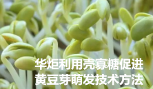 华炬新产品研究所技术咨询委员会科研人员现推荐一项一种利用壳寡糖促进黄豆芽萌发技术方法,该技术的有益效果:该技术的突出效果是在相同发芽时间内,种子浸泡阶段添加壳寡糖的黄豆比不添加的黄豆发芽势、发芽率和发芽指数明显提高,制备的黄豆芽的鲜重和芽长显著增加,黄豆芽的产量明显提高,同时黄豆芽中游离氨基酸、还原糖、维生素C和缩合单宁的含量也显著增加,黄豆芽的营养品质明显提高。该技术的创新点在于外源添加壳寡糖促进了黄豆的萌发,增加了黄豆芽的鲜重和芽长,提高了黄豆芽的主要营养成分,从而能够提高黄豆芽的产量和质量,提高生产效率,并且这种方法操作简单,成本低廉,无需增加设备,便于工业推广应用,现将该一种利用壳寡糖促进黄豆芽萌发技术方法及实施例介绍如下供研究交流参考:(211211 311361)
