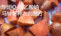 华炬新产品研究所技术咨询委员会科研人员现推荐一项一种Q-萘乙酸钠马铃薯种衣剂配方,该技术提供一种由植物生长调节剂Q-萘乙酸钠和另一种植物生长调节剂复配而成的新型、高效、低毒、无残留、对环境安全、无公害的生态环保缓释农药制剂,在马铃薯拌种使用方面,能保证有效成分稳定,药效发挥好,使马铃薯在整个生长过程中防虫、防病,改善生长环境,达到增产、改善作物品质的目的,现将该一种Q-萘乙酸钠马铃薯种衣剂配方及实施例介绍如下供研究交流参考:(211211 421546)