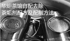 华炬新产品研究所技术咨询委员会科研人员现推荐一项一种茶馆自配去除茶垢剂配方及配制方法,该技术茶垢为酸性物质,该技术配通过酸碱反应,茶垢可以迅速剥落,原料采用食品级,对茶杯或茶壶没有影响,尤其不影响下次泡茶时候的茶水的味道。,具有方法简单,使用方便,效果明显等特点,具有推广价值,现将该一种茶馆自配去除茶垢剂配方及配制方法及实施例介绍如下供研究交流参考:(371311 181513)