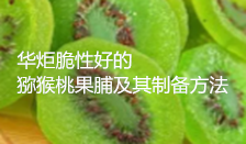 猕猴桃,也称奇异果果形一般为椭圆状,早期外观呈绿褐色,成熟后呈红褐色,表皮覆盖浓密绒毛,可食用,其内是呈亮绿色的果肉和一排黑色或者红色的种子。猕猴桃的质地柔软,口感酸甜。味道被描述为草莓、香蕉、菠萝三者的混合。猕猴桃除含有猕猴桃碱、蛋白水解酶、单宁果胶和糖类等有机物,以及钙、钾、硒、锌、锗等微量元素和人体所需17种氨基酸外,还含有丰富的维生素C、葡萄酸、果糖、柠檬酸、苹果酸、脂肪。猕猴桃具其含有丰富的营养物质,因此可以提高总蛋白质水平。它还增加红血球生产,加强牙齿和指甲。不仅如此,猕猴桃还能稳定情绪、降胆固醇、帮助消化、预防便秘,还有止渴利尿和保护心脏的作用。猕猴桃由于其含有丰富的营养物质,其最大的特点就是难以储存,易变质,即使通过严格的控制环境温湿度也能以长久保存,而且温湿度控制越严格,意味着成本越高。目前国内最为常见的办法就是制备成猕猴桃果脯以得到长期保存,国内外进行多方面的研究,然而猕猴桃因为含有大量的单宁、糖类等物质,通过普通的制备方法得到的猕猴桃果脯粘度大,咀嚼时易造成粘牙的现象,尤其对老人和小孩带来不便,同时其口感也会下降,一定程度上阻碍猕猴桃的经济发展,开发一种可以脆性好,不粘牙且口感好的猕猴桃果脯能够解决上述存在的问题。