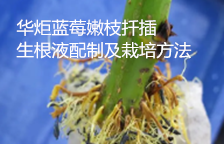 华炬新产品研究所技术咨询委员会科研人员现推荐一项一种蓝莓嫩枝扦插生根液配制及栽培方法,该技术与传统生根液相比,可以使生根时间由90天缩短到30天,嫩枝生根率由50%上升到80%以上,新苗成活率由50%上升到90%,同时新苗的质量也有了显著的提高。该方法有利于蓝莓在我国的推广和普及,必将会带来巨大的经济效益,现将该一种蓝莓嫩枝扦插生根液配制及栽培方法及实施例介绍如下供研究交流参考:(241271 271346)