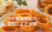 华炬新产品研究所技术咨询委员会科研人员现推荐一项一种鱿鱼圈配方及加工工艺步骤,该技术的有益效果: 1.该技术工艺操作简便、配套设备少;2.该技术加工的鱿鱼圈外形美观、营养丰富、油炸后外酥里嫩、味道鲜美,现将该一种鱿鱼圈配方及加工工艺步骤及实施例介绍如下供研究交流参考:(341211 523667)
