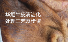 华炬新产品研究所技术咨询委员会科研人员现推荐一项一种牛皮清洁化处理工艺及步骤,该技术的优点:1、在浸水步骤主要采用浸水酶,大大减少了表面活性剂的使用量,降低了COD、BOD的含量。2、浸灰和复灰的特点与传统毁毛法相比,保毛浸灰工艺改变了工艺思路,先保毛滤毛再浸灰膨胀,降低了废水中的氨氮、COD、BOD、固体废弃物的含量。滤出的毛重约占皮重的22%,整个浸灰过程化料用量节省约60%,且浸灰后的废液实现了循环使用,做到了零排放。碱皮膨胀均匀,皮面清洁,生长纹打开,等级率比毁毛法提高约20%。3、采用无铵脱灰软化系统,降低了废水中的氨氮含量。4、牛皮制革硫化物、石灰使用和排放量减少50%左右,省去氨盐脱灰工艺,氨氮含量降低90%以上,COD、悬浮物减少85%以上。是一种牛皮清洁化处理工艺,减轻环境污染,适合环境保护的要求,现将该一种牛皮清洁化处理工艺及步骤及实施例介绍如下供研究交流参考:(311241 331472)