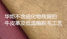 华炬新产品研究所技术咨询委员会科研人员现推荐一项一种不含硫化物残留的牛皮革及低温酶脱毛工艺,该技术具有以下优点:1.完全不使用已知牛皮制革中的脱毛硫化碱和工艺方法;2.所述的酶脱毛是在常温下进行,温度介于15~28摄氏度之间,突破了皮革鞣制领域中牛皮无法在低温下进行鞣制的技术瓶颈,并且脱毛在室温下进行能够节约大量的能源;3. 所说的酶脱毛工艺完全不需要添加硫化物或其他脱毛化学品;避免对水质和空气的污染,并且产生的含蛋白废水可以替代部分氮肥直接用于农业灌溉;4.使用的酶制剂剂量低,综合成本低于已知方法;5.有效降低制革污水处理成本,现将该一种不含硫化物残留的牛皮革及低温酶脱毛工艺及实施例介绍如下供研究交流参考:(311241 337426)