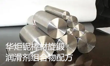 华炬新产品研究所技术咨询委员会科研人员现推荐一项一种铌棒材旋锻润滑剂组合物配方,该技术的显著优点在于:具有润滑、冷却、渗透性、热氧化安定性能优良,分散、清洗、浸润、承载能力、抗擦拉伤能力强,使加工棒材表面光洁度高、规格精度高、抗腐蚀周期长,适用于不同的供油方式,操作方便,现将该一种铌棒材旋锻润滑剂组合物配方及实施例介绍如下供研究交流参考:(611511 625567)