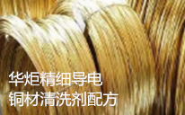华炬新产品研究所技术咨询委员会科研人员现推荐一项一种精细导电铜材清洗剂配方,该技术的有益效果是:该技术的清洗剂环境友好无污染,清洗后洁净度高,它的使用降低了铜材的生产成本,值得推广,现将该一种精细导电铜材清洗剂配方及实施例介绍如下供研究交流参考:(611341 461341)