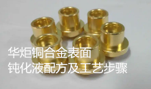 华炬新产品研究所技术咨询委员会科研人员现推荐一项一种铜合金表面钝化液配方及工艺步骤,该技术具有如下有益效果:(1)该工艺采用的钝化液不含污染环境及影响人体健康的物质,且钝化效果优 良,在潮湿的空气中,黄铜可保持8-12个月不变色,紫铜可保持6个月以上不 变色。在湿度为80%、温度为70℃-90℃的条件下:黄铜色泽可以保持150小 时以上,紫铜色泽可以保持80小时以上。(2)该钝化液使用方便,钝化后不需要清洗,节约用水;适用范围广,不仅能够 对铜合金进行钝化处理,而且对紫铜(纯铜)也有很好的钝化作用,现将该一种铜合金表面钝化液配方及工艺步骤及实施例介绍如下供研究交流参考:(611341 473483)