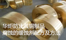 华炬新产品研究所技术咨询委员会科研人员现推荐一项一种用于防止黄铜制品腐蚀的缓蚀剂配方及方法,该技术具有以下有益效果:1、该技术用于防止黄铜制品腐蚀的缓蚀剂添加了聚天冬氨酸和聚环氧琥珀酸,两者均为高效环保的成分,原料来源丰富且对环境没有污染,同时按照该技术的添加比例制得的缓蚀剂效果更好。2、该技术用于防止黄铜制品腐蚀的缓蚀剂添加的分散组分增强了缓蚀剂的作用,能够更好的发挥聚合物组分的缓蚀作用。3、该技术用于防止黄铜制品腐蚀的缓蚀剂不含有磷系成分,不会对水体造成污染,属于环保型产品。4、该技术用于防止黄铜制品腐蚀的缓蚀剂成分配比科学合理,制备方法简单,对环境友好,适于大规模的生产使用。是一种配方科学合理,成本低廉,对环境友好的无污染的黄铜制品缓蚀剂,现将该一种用于防止黄铜制品腐蚀的缓蚀剂配方及方法及实施例介绍如下供研究交流参考:(611341 475408)