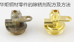 华炬新产品研究所技术咨询委员会科研人员现推荐一项一种适于铜材零件的除锈剂配方及方法,该技术的有益效果:该技术产品除锈剂除锈能力强,除锈效率高且适于钢材精密零件的除锈,适于铜材零件的除锈剂,且除锈工艺简单,操作方便,现将该一种适于铜材零件的除锈剂配方及方法及实施例介绍如下供研究交流参考:(611341 465447)