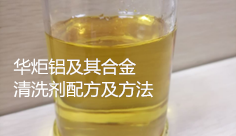 华炬新产品研究所技术咨询委员会科研人员现推荐一项一种铝及其合金清洗剂配方及方法,该技术优点效果:其主要针对传统的铝及其 合金清洗剂的问题,其使用安全、环保、成本低廉。该技术产品为常温防锈型清洗剂。使用温度在30℃左右。外观浅黄色透明液体、 pH值8.0-10.0、溶于水、无毒。适用对象为铝及其合金材质工件。使用浓度≤5%; 使用方法为浸泡清洗。更换清洗剂时保留少量残留液利于皂化达到更好的清洗 效果,现将该一种铝及其合金清洗剂配方及方法及实施例介绍如下供研究交流参考:(611311 453481)