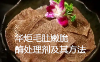 华炬新产品研究所技术咨询委员会科研人员现推荐一项一种毛肚嫩脆酶处理剂及其方法,该技术具有以下有益效果:该技术制得到的毛肚嫩脆酶处理剂的制备方法,操作简单。采用该技术提供的毛肚嫩脆酶处理剂对毛肚处理,因此经此方法处理后的毛肚口感好。该技术提供的嫩脆毛肚熟制,因此该方法熟制后的熟制毛肚的口感好,现将该一种毛肚嫩脆酶处理剂及其方法及实施例介绍如下供研究交流参考:(311241 341442)