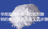 华炬新产品研究所技术咨询委员会科研人员现推荐一项一种超纯牛磺熊去氧胆酸钠的禽胆制取法及工艺步骤,该技术的目的是:推出一种不同于熊去氧胆酸的生产路线,而直接从禽胆中提取牛磺熊去氧胆酸钠的方法,现将该一种超纯牛磺熊去氧胆酸钠的禽胆制取法及工艺步骤及实施例介绍如下供研究交流参考:(311241 361498)