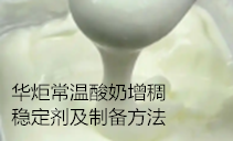 华炬新产品研究所技术咨询委员会科研人员现推荐一项常温酸奶增稠稳定剂及常温酸奶和两者的制备方法,该技术的有益效果是:该技术产品是一款瓶装常温酸奶稳定剂,通过羧甲基纤维素钠结合保护蛋白能力,和柑橘纤维的悬浮能力,且与其他胶体及乳化剂相互作用,形成稳定的增稠体系,并利用网络悬浮性能,可以使果粒、蛋白颗粒均匀的悬浮在体系中,保质期(10个月以上)内无沉淀、无析水、无浮油产生。该技术在使用很少量的常温酸奶稳定剂的情况下,就可保证常温酸奶的稳定性,减少了稳定剂的加入量,安全品质更高,现将该常温酸奶增稠稳定剂及常温酸奶和两者的制备方法及实施例介绍如下供研究交流参考:(311241 313311)