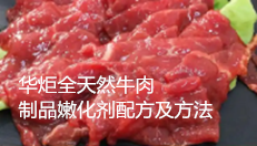 华炬新产品研究所技术咨询委员会科研人员现推荐一项一种全天然牛肉制品嫩化剂配方及方法,该技术提供一种全天然牛肉制品嫩化剂的方法,以这种方法制备的牛肉制品嫩化剂用于牛肉制品时可使牛肉的嫩度达到最佳使用状态,而且柔嫩多汁并富有较好的弹性,提高牛肉制品持水力达到21%,现将该一种全天然牛肉制品嫩化剂配方及方法及实施例介绍如下供研究交流参考:(311241 324505)