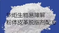 华炬新产品研究所技术咨询委员会科研人员现推荐一项一种生物易降解粉体皮革脱脂剂配方,该产品技术脱脂剂具有稳定性良好,容易保存,使用方便,脱脂力强,脱脂成本低、生物易降解等优良特点,现将该一种生物易降解粉体皮革脱脂剂配方及实施例介绍如下供研究交流参考:(311271 244518)