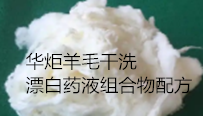华炬新产品研究所技术咨询委员会科研人员现推荐一项一种羊毛干洗漂白药液组合物配方,该技术与现有技术相比具备以下有益效果:1、通过采用该技术配方制成的特定的干洗漂白药液,可以对羊毛进行干洗,且干洗的效果不弱于水洗,避免水洗过程消耗大量的水,减小企业的成本,同时避免搓洗过程中对羊毛产生的损伤,使得羊毛光洁度更高,清洗结束得到的羊毛的白度也不低于水洗的羊毛的白度;2、干洗液中的卤代经与水分作用可能产生对于干洗设备有腐蚀作用的卤化氢,该技术干洗漂白药液中添加的防腐蚀剂用于,为了防止魔蚀作用;表面活性剂可以增强干洗漂白药液对羊毛表面杂质混合溶解,提升清洗程度;抗再沉积剂可以避免杂质沉淀到干洗漂白药液底部;柔软剂和抗静电剂可以改善洗后织物的手感和防止静电,现将该一种羊毛干洗漂白药液组合物配方及实施例介绍如下供研究交流参考:(311271 221425)