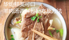 华炬新产品研究所技术咨询委员会科研人员现推荐一项一种鲜美可口羊肉汤调料包配方及方法,该技术的有益效果是:该技术调料包中含有多种适合熬制羊肉汤的调料,胡椒、白叩和陈皮都能去除羊肉的羊膻味,胡椒还具有温中、下气、消痰、解毒的功能;白叩也还具有化湿消痞,行气温中,开胃消食的功能;陈皮具有理气健脾,燥湿化痰的作用。砂仁具有养脾胃的作用。干辣椒具有提味的功能,减少人体对羊膻味的感觉。香叶具有治风湿、疝气的作用。胖大海清热润肺的作用。当归具有补血活血的作用。上述几种原料的配合,不仅能够去除羊膻味,还能使羊肉汤味道更鲜美,色泽更白亮,营养更丰富,是一种羊肉汤调料包,简化家庭熬制羊肉的步骤,熬制的羊肉无羊膻味,味道鲜美。现将该一种鲜美可口羊肉汤调料包配方及方法及实施例介绍如下供研究交流参考:(311271 327568)
