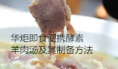 华炬新产品研究所技术咨询委员会科研人员现推荐一项一种即食便携酵素羊肉汤及其制备方法,该技术的有益效果为:该技术提供的即食便携酵素羊肉汤以羊肉和羊骨汤为主要的原料,辅以基础的调料以及酵素水溶液。该技术的羊肉经过酵素水溶液的作用之后,羊肉中的膻味物质得到分解;此外酵素水溶液中的酶类一方面能够将羊肉中的大分子的蛋白质酶解为小分子的氨基酸,而得到的甘氨酸、谷氨酸能够提升羊肉汤的鲜味,另一方面酵素中含有丰富的酶类和其他小分子营养物质,能够增加羊肉汤营养的同时,能够增加羊肉汤的甜味。该技术提供的羊肉汤中氨基酸的含量高,口感鲜甜,无膻味,营养丰富易被吸收。该技术提供的即食便携酵素羊肉汤口感细腻、鲜甜,色白汤浓,无膻味,富含多种氨基酸和核苷酸类呈鲜物质,现将该一种即食便携酵素羊肉汤及其制备方法及实施例介绍如下供研究交流参考:(311271 327541)