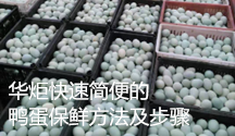 现在有大约20%的新鲜鸭蛋带有病菌,主要有大肠杆菌、链球菌、葡萄球菌、变形杆菌、沙门氏菌等,而且普通方法很难将这些病菌杀死。华炬新产品研究所技术咨询委员会科研人员现推荐一项一种快速简便的鸭蛋保鲜方法及步骤,该技术的目的是要提供一种鸭蛋保鲜方法,它能有效的避免普通方法很难将这些病菌杀死的缺点。可以在较短时间内迅速将病菌杀灭,使病菌失去生存能力,现将该一种快速简便的鸭蛋保鲜方法及步骤及实施例介绍如下供研究交流参考:(311341 321567)