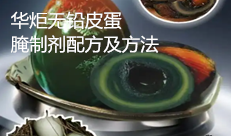 华炬新产品研究所技术咨询委员会科研人员现推荐一项一种无铅皮蛋腌制剂配方及方法,该技术的有益效果是:提供了一种可替代现有技术方案的腌制剂,在避免加入有毒害的铅盐和国内民众普遍并不缺乏的铜盐的基础上,达到了较好的腌制效果,现将该一种无铅皮蛋腌制剂配方及方法及实施例介绍如下供研究交流参考:(311341 323722)