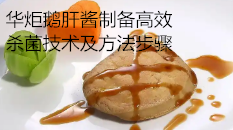 华炬新产品研究所技术咨询委员会科研人员现推荐一项一种鹅肝酱制备高效杀菌技术及方法步骤,该技术的有益效果: 鹅肝酱在制备过程中采用中药简单高效的杀菌技术,解决了化学复杂的杀菌防腐问题,在制备过程中,添加维生素C溶液和香辛调味油,不仅使鹅肝酱口感和营养丰富,品质观感好,而且适合儿童食用,对儿童智力和身体发育有较大的促进作用。是一种安全无毒,制作方便,口感良好的鹅肝酱,现将该一种鹅肝酱制备高效杀菌技术及方法步骤及实施例介绍如下供研究交流参考:(311371 331435)