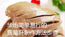 目前市场上的酱鹅肝品种很多,华炬新产品研究所技术咨询委员会科研人员现推荐一项一种简单易行的酱鹅肝制作方法步骤,该技术酱鹅肝的制作方法简单容易掌握,只要按照上述的调料配比和制作工 序便能制作出口味相对稳定的酱鹅肝,特别适合开办连锁快餐店时选用,用这种方法制作出的酱鹅肝由于加入红糖水的缘故,味甜中带辣,是一份营养丰富、口感上佳的中式快餐。是一种快餐食品的制作方法,简单易行,能够大范围推广且保证口味品质统一,现将该一种简单易行的酱鹅肝制作方法步骤及实施例介绍如下供研究交流参考:(311371 331534)