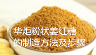 华炬新产品研究所技术咨询委员会科研人员现推荐一项一种粉状姜红糖的制造方法及步骤,该技术的优点在于该技术产品粉状姜红糖的制造方法,操作简单,工序少;用本发明制造的姜红糖,食用方便,能祛寒,治疗伤寒头痛鼻塞,具有很好的推广和使用价值。是一种食用方便且能祛寒,治疗伤寒头痛鼻塞的粉状姜红糖的制造方法,现将该一种粉状姜红糖的制造方法及步骤及实施例介绍如下供研究交流参考:(211241 343573)